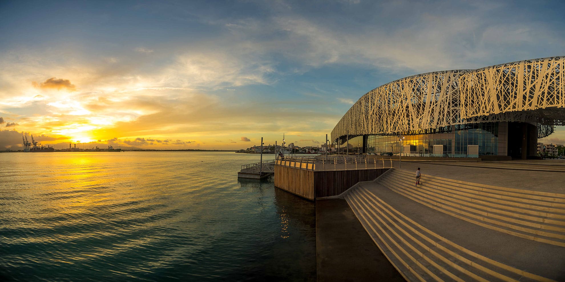 L’édifice de 240 mètres de long est composé de deux bâtiments formant un gigantesque serpent tapissé de granit noir. Ses façades sont recouvertes d’éclats de quartz noirs, dont la constellation représente les millions d’âmes victimes de la traite négrière et de l’esclavage. Pensé comme un « phare » rayonnant sur la Guadeloupe et les Caraïbes, ce bâtiment long de 240 mètres est la première chose visible par l’homme à l’arrivée en bateau dans la baie de Pointe-à-Pitre.