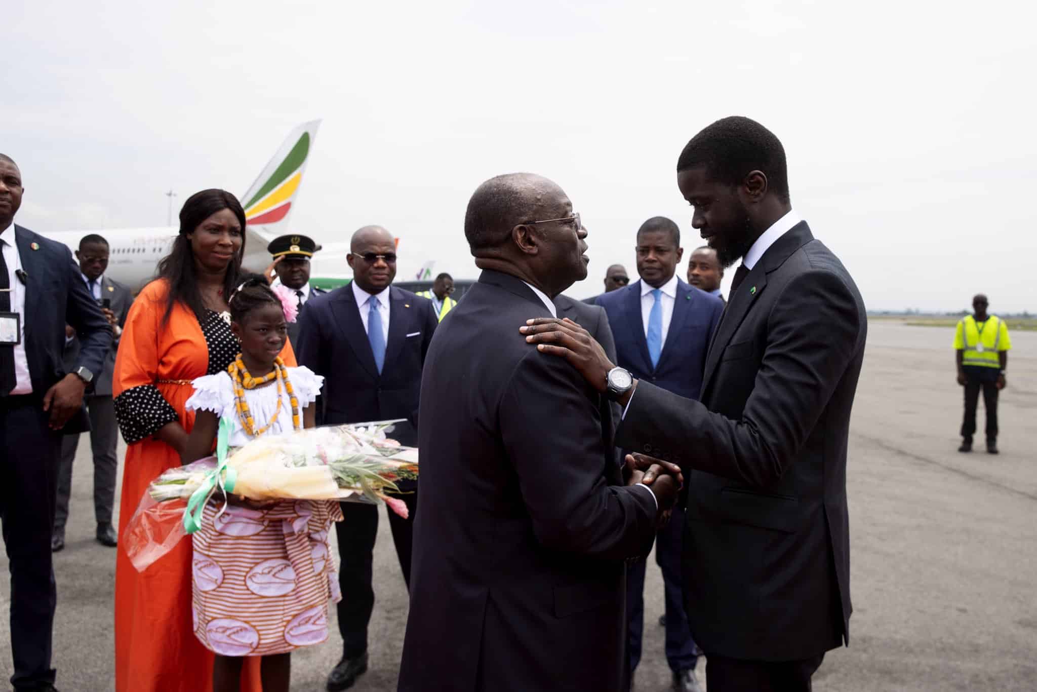 En visite à Abidjan, le président sénégalais, Bassirou Diomaye Faye a été accueilli à sa descente d’avion par Tiémoko Meyliet Koné, Vice-président de la République de Côte d’Ivoire.