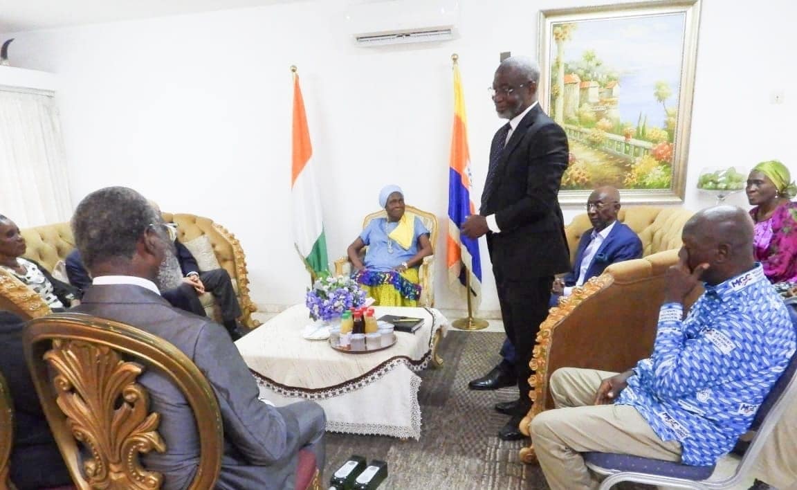 « Vous voyez la qualité de la délégation, elle est composée essentiellement de membres de la famille Bédié et Koizan. Cela veut dire que nous sommes là pour voir la sœur de madame Bédié plutôt que la présidente du MGC », a laissé entendre Roger Koizan, frère cadet d’Henriette Bédié, porte-parole de la délégation. Il a relevé l’importance pour les deux familles de venir lui annoncer officiellement la disparition de l’ancien président du PDCI-RDA.