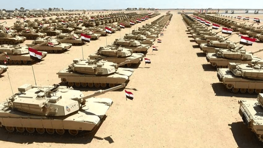 Les troupes régulières de l’armée égyptienne comptent près de 470 000 agents. Elle est équipée de 1015 chars blindés de type M1A1 Abrams. Elle a à sa disposition au moins 310 véhicules blindés légers de type YPR 765 ; des véhicules d’artillerie ; des M59-1M canon 130 mm ; des hélicoptères militaires et beaucoup d’autres moyens de guerre de dernière génération.