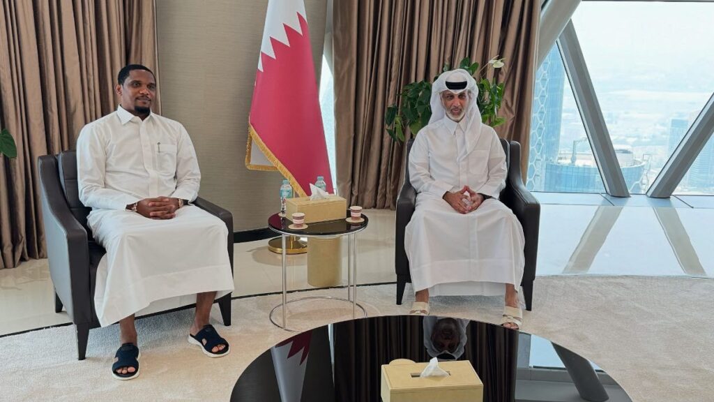 Le ministre qatari en charge du Sport et de la Jeunesse, Cheikh Hamad bin Khalifa bin Ahmed Al Thani a reçu en audience ce mercredi le président de la Fecafoot, Samuel Eto’o. Les deux personnalités ont discuté sur des sujets d’intérêts communs, mais surtout, sur les moyens et possibilités de développer davantage le football.
